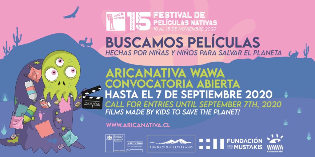 Con un llamado urgente a los niños y niñas que quieran salvar los tesoros naturales y culturales del planeta haciendo películas, se abrió la convocatoria de Arica Nativa Wawa, parte del 15 Festival de Películas Nativas Arica Nativa. Las postulaciones están abiertas para todo tipo de películas, sin distinción de género o formato, de hasta 5 minutos de duración que hayan sido producidas por cineastas de hasta 14 años de edad y que cuenten historias sobre su relación con el entorno natural y cultural.