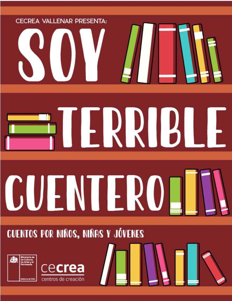 En el marco de las celebraciones online organizadas por el Día del Libro y del Derecho de Autor, el pasado 23 de marzo, Cecrea Vallenar invitó a niños, niñas y jóvenes a desarrollar sus capacidades comunicativas, creativas y de observación para ser parte del compilado de cuentos "Soy terrible cuentero", el que fue complementado con un laboratorio virtual que lleva el mismo nombre y que llamó a sus participantes a explorar los recursos tecnoteatrales capaces de complementarse con sus creaciones literarias.