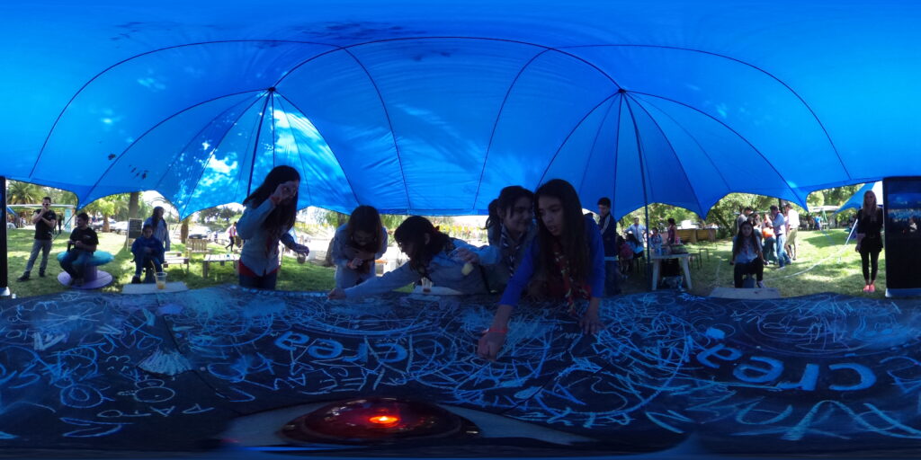 La idea era que los niños, niñas y jóvenes fueran protagonistas de innovadoras experiencias creativas, tales como un juego de robótica; un software para experimentar con el cuerpo como conductor de electricidad; y bicicletas colaborativas que sólo con el pedaleo en equipo activaban una cámara fotográfica de 360°. Además, se incluyó un espacio ciudadano, donde los niños, niñas y jóvenes, respondieron libremente preguntas (¿qué derecho le regalarías a un amigo), una rampla de skate, y una zona de ocio, con muebles sustentables.